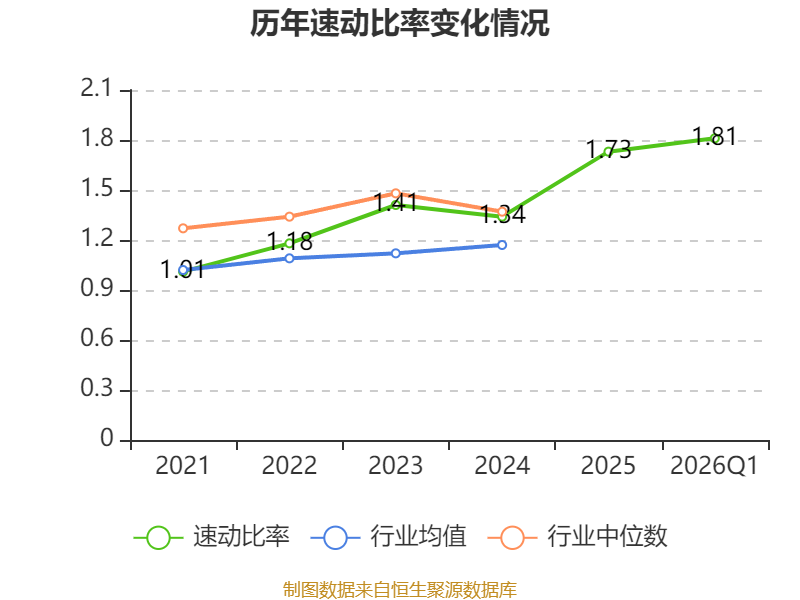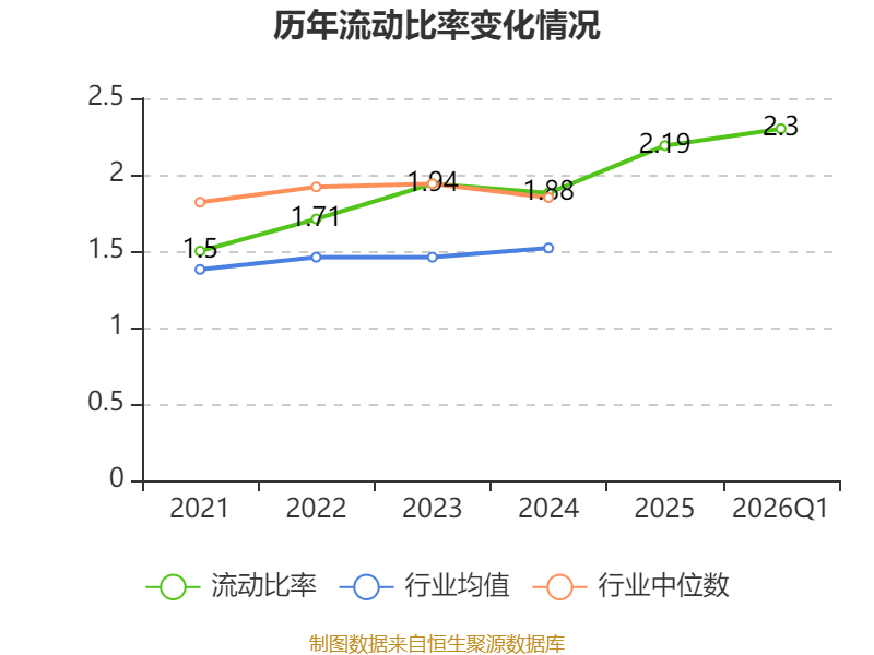 2026年第一季度,公司流动比率为2.3,速动比率为1.81。