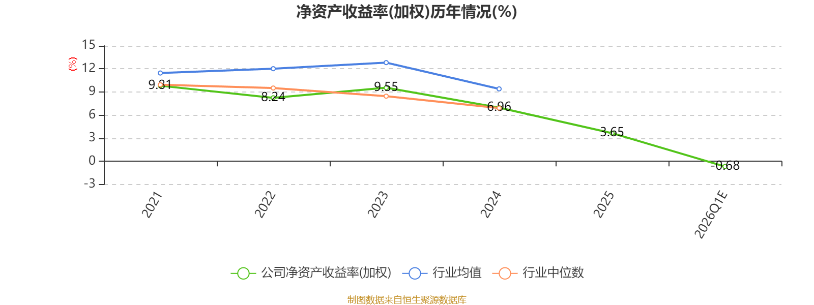 数据显示,2026年一季度公司加权平均净资产收益率为-0.68%,较上年同期上升0.27个百分点。