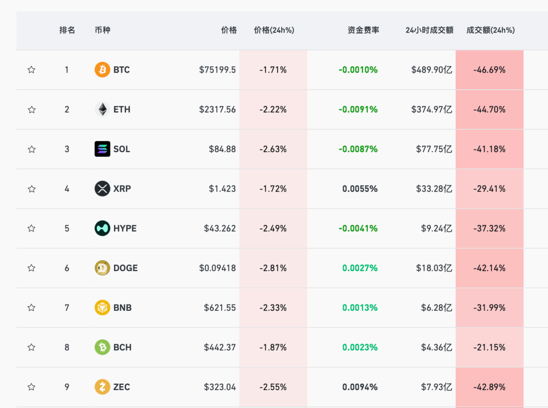 【导读】比特币短线跌破75000美元
