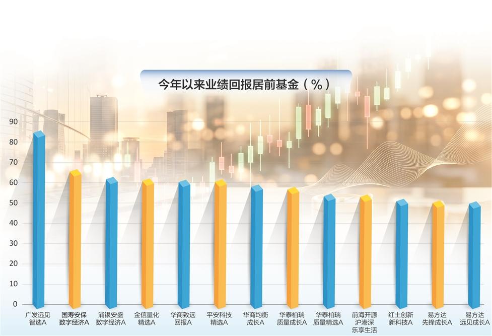 Wind数据显示,年内表现最优的广发远见智选,净值涨幅已超85%;平安科技精选、金信量化精选等5只产品年内涨幅突破60%;年内收益超30%的主动权益基金数量达180只。