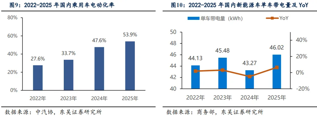 需求强劲+盈利持续改善,全球能源危机下优势凸显。国内动力需求已初步恢复,叠加单车带电量提升超预期+油价上行背景下,出口需求有望持续超预期。预计26年全球动力需求20%+;国内各地容量电价陆续出台,储能需求有望提速,预计26年全球储能需求增长60%,锂电26年预计30%+增长,27年维持20%+增速。
