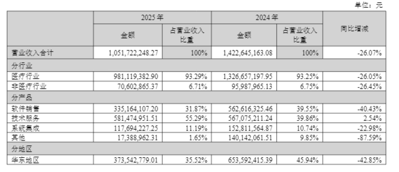 创业慧康(300451.SZ)正经历上市以来最严峻的考验。这家曾是医疗信息化领域第一梯队的公司去年营业收入10.52亿元,同比下滑26.07%;归属于上市公司股东的净利润亏损4.02亿元,相比2024年1.74亿元的亏损额,亏损幅度激增131.47%,基本每股收益为-0.26元。
