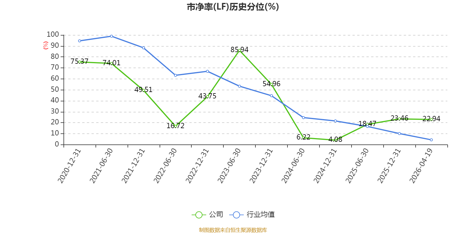 市盈率、市净率为负时,不显示当期分位数,会导致折线图中断。
