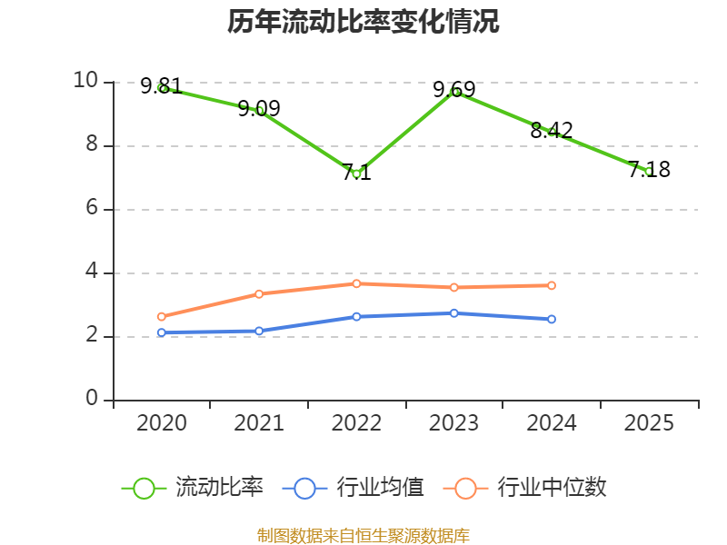2025年,公司流动比率为7.18,速动比率为6.52。