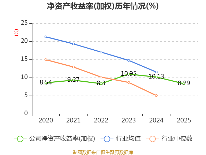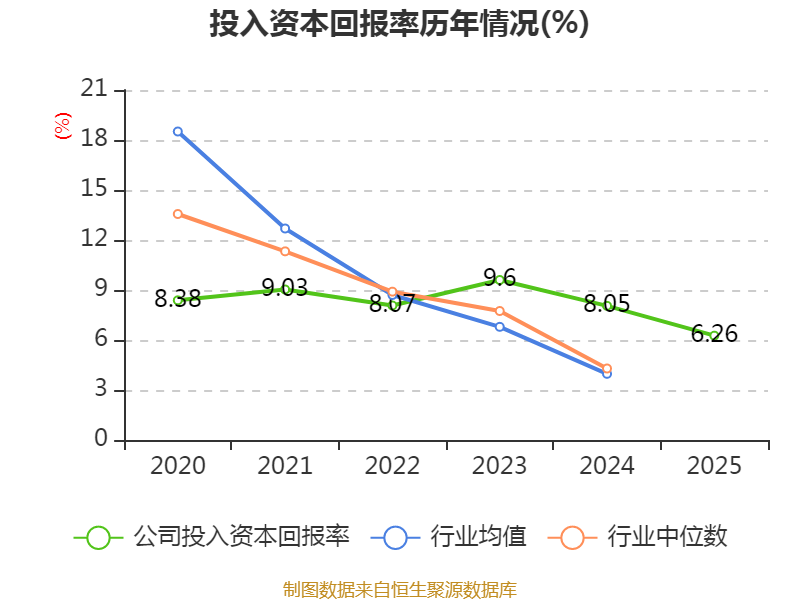 数据显示,2025年公司加权平均净资产收益率为8.29%,较上年同期下降1.84个百分点。公司2025年投入资本回报率为6.26%,较上年同期下降1.79个百分点。