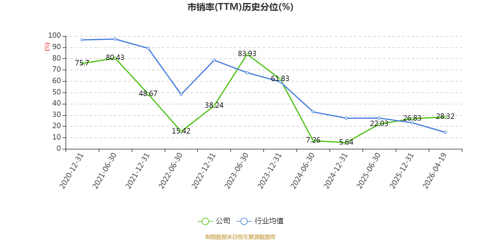 以4月17日收盘价计算,祥生医疗目前市盈率(TTM)约为28.48倍,市净率(LF)约2.4倍,市销率(TTM)约7.61倍。