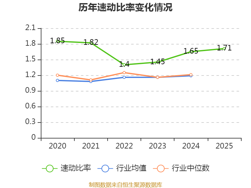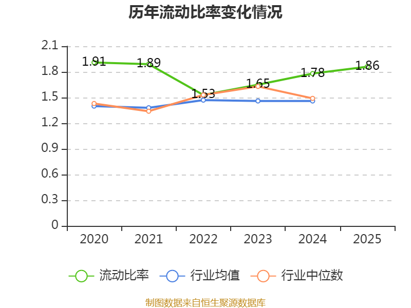 2025年,公司流动比率为1.86,速动比率为1.71。