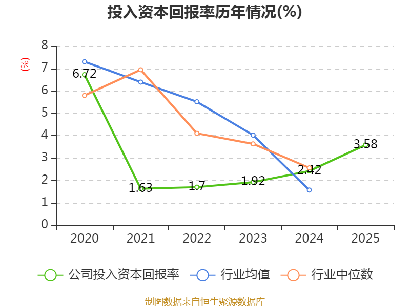 数据显示,2025年公司加权平均净资产收益率为3.68%,较上年同期上升1.02个百分点。公司2025年投入资本回报率为3.58%,较上年同期上升1.16个百分点。