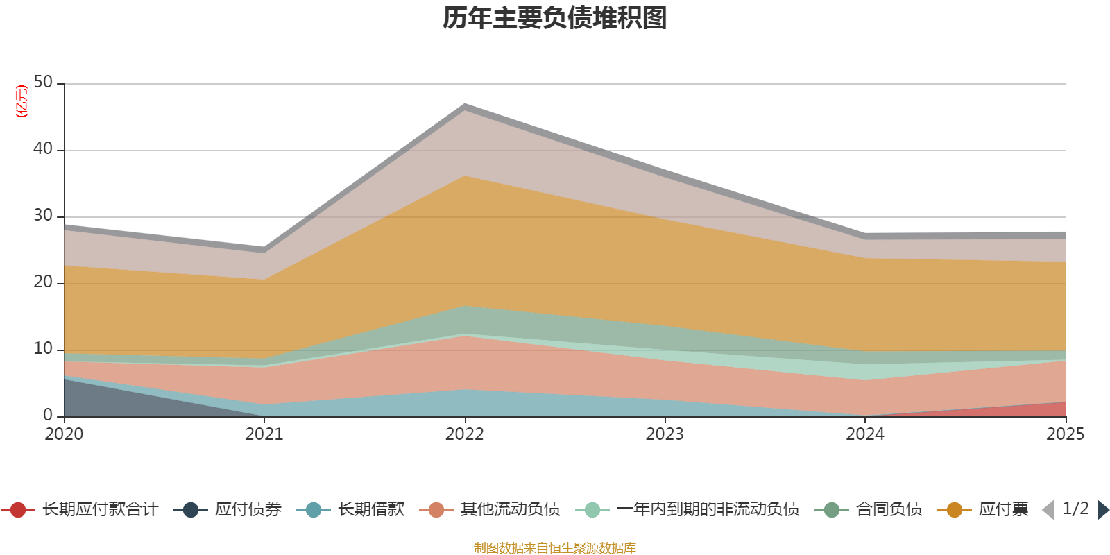 负债重大变化方面,截至2025年末,公司一年内到期的非流动负债较上年末减少92.66%,占公司总资产比重下降4.04个百分点;长期应付款合计占公司总资产的3.72%,上年末为0;应付票据及应付账款较上年末减少4.59%,占公司总资产比重下降1.77个百分点;其他流动负债较上年末增加17.26%,占公司总资产比重上升1.35个百分点。