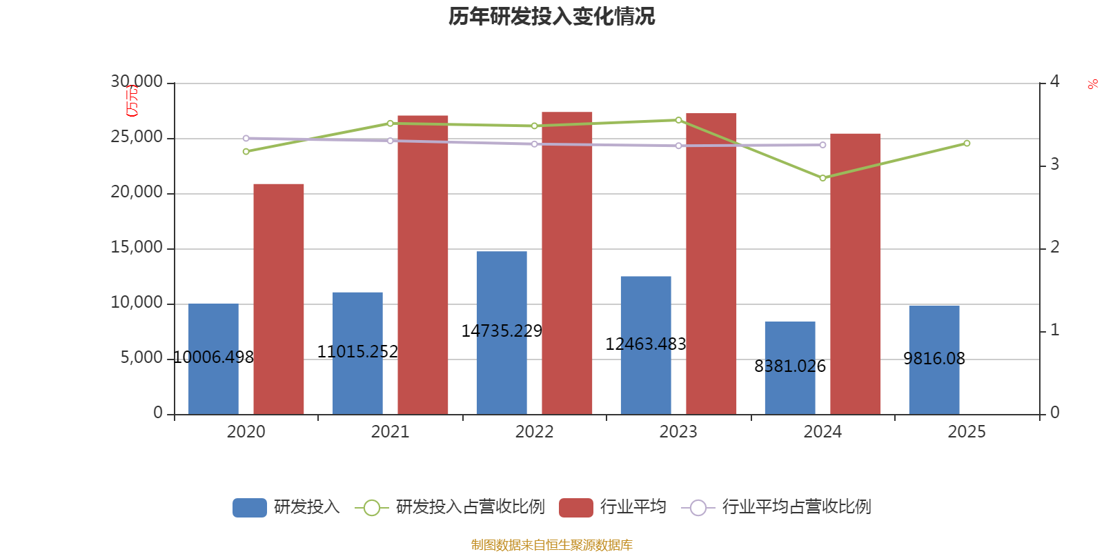 2025年全年,公司研发投入金额为9816.08万元,同比增长17.12%;研发投入占营业收入比例为3.27%,相比上年同期上升0.42个百分点。此外,公司全年研发投入资本化率为0%。