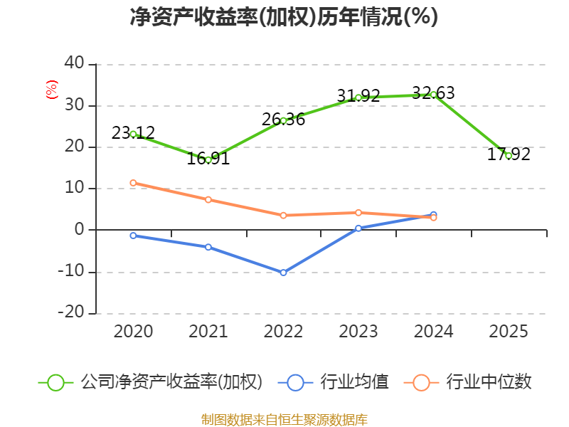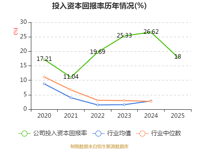 数据显示,2025年公司加权平均净资产收益率为17.92%,较上年同期下降14.71个百分点。公司2025年投入资本回报率为18%,较上年同期下降8.62个百分点。
