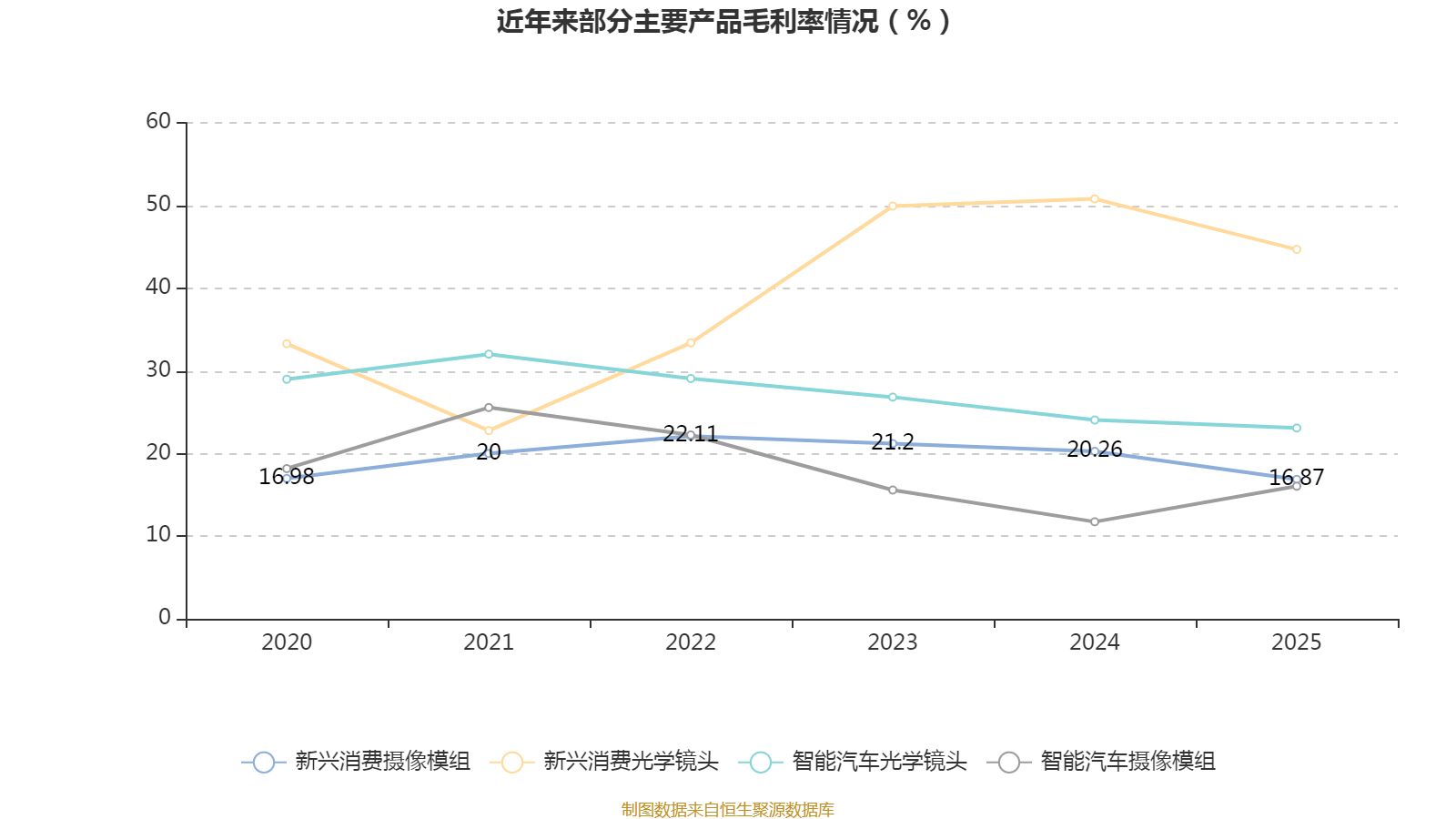 资料显示,公司专注光学镜头及摄像模组产品的研发、设计、生产和销售,产品主要应用于智能汽车、智能家居、全景/运动相机三大核心领域,近年来拓展至人工智能硬件、机器视觉、工业检测与医疗等新业务领域,形成“3+N”的产品格局。