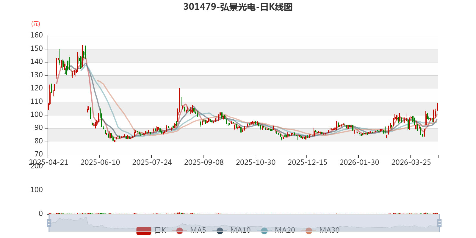 以4月17日收盘价计算,弘景光电目前市盈率(TTM)约为50.24倍,市净率(LF)约7.55倍,市销率(TTM)约5.73倍。