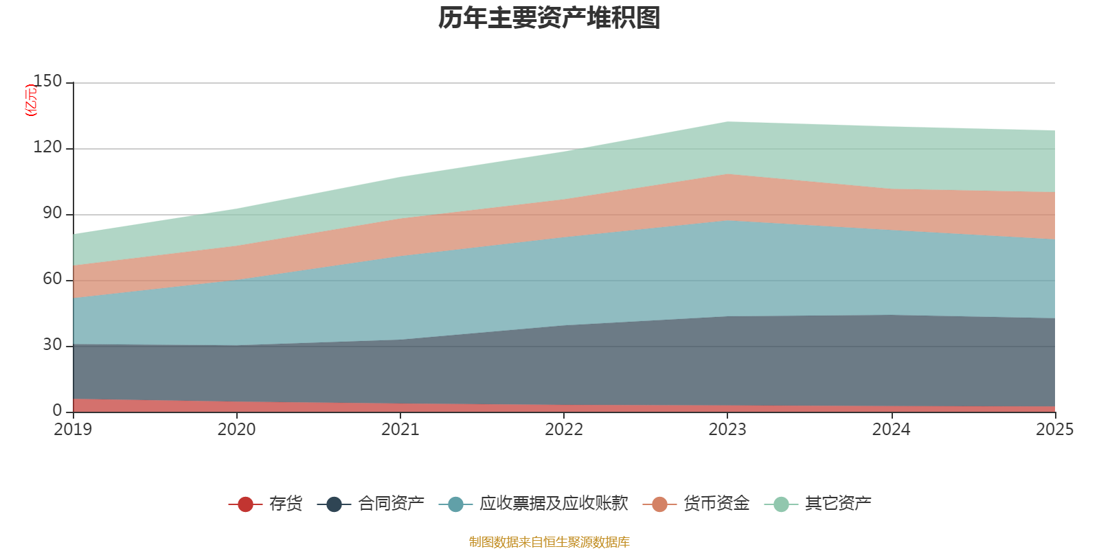 资产重大变化方面,截至2025年末,公司货币资金较上年末增加14.78%,占公司总资产比重上升2.37个百分点;应收票据及应收账款较上年末减少7.16%,占公司总资产比重下降1.74个百分点;交易性金融资产合计较上年末减少32.19%,占公司总资产比重下降0.96个百分点;合同资产较上年末减少3.16%,占公司总资产比重下降0.57个百分点。