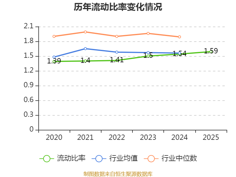 2025年,公司流动比率为1.59,速动比率为1.55。