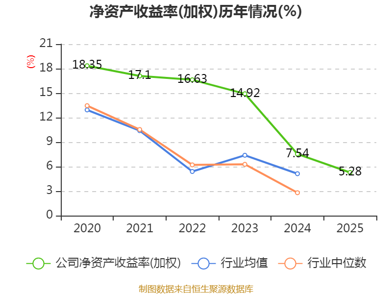 数据显示,2025年公司加权平均净资产收益率为5.28%,较上年同期下降2.26个百分点。公司2025年投入资本回报率为4.64%,较上年同期下降2.1个百分点。