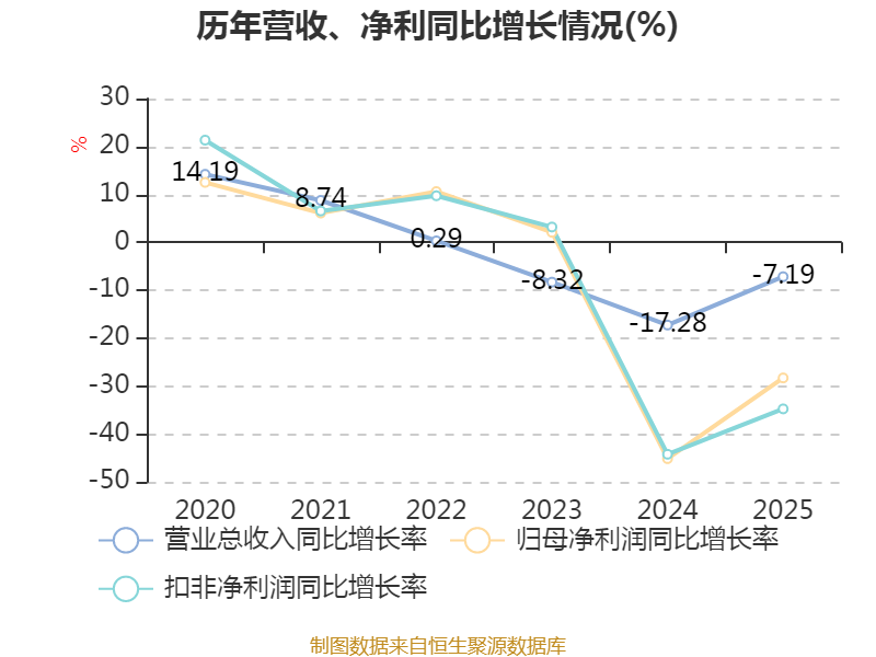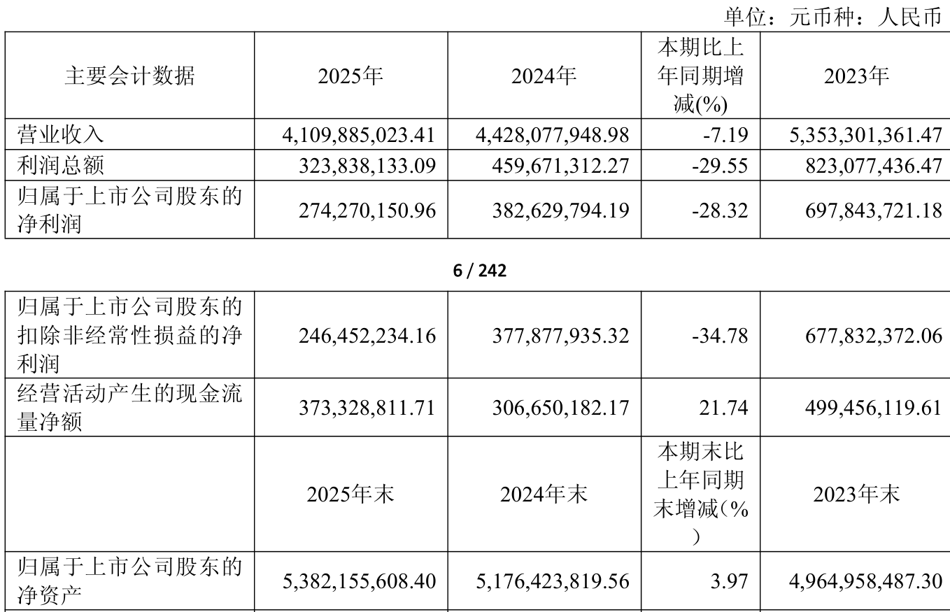 中证智能财讯华设集团(603018)4月20日披露2025年年度报告。2025年,公司实现营业总收入41.1亿元,同比下降7.19%;归母净利润2.74亿元,同比下降28.32%;扣非净利润2.46亿元,同比下降34.78%;经营活动产生的现金流量净额为3.73亿元,同比增长21.74%;报告期内,华设集团基本每股收益为0.41元,加权平均净资产收益率为5.28%。公司2025年度分配预案为:拟向全体股东每10股转2股,派现1.25元(含税)。