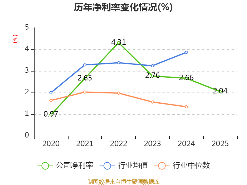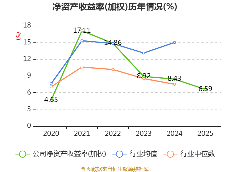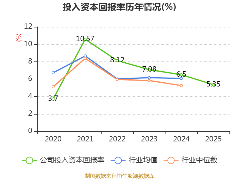 数据显示,2025年公司加权平均净资产收益率为6.59%,较上年同期下降1.84个百分点。公司2025年投入资本回报率为5.35%,较上年同期下降1.15个百分点。