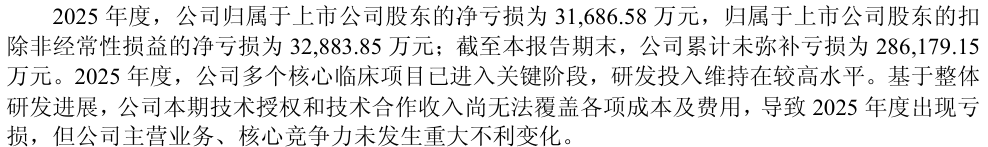 2025年,益方生物营业收入同比下降77.91%,归母净亏损扩大至3.17亿元。有报告期数据(2018年)以来,公司累计亏损已超过29亿元。