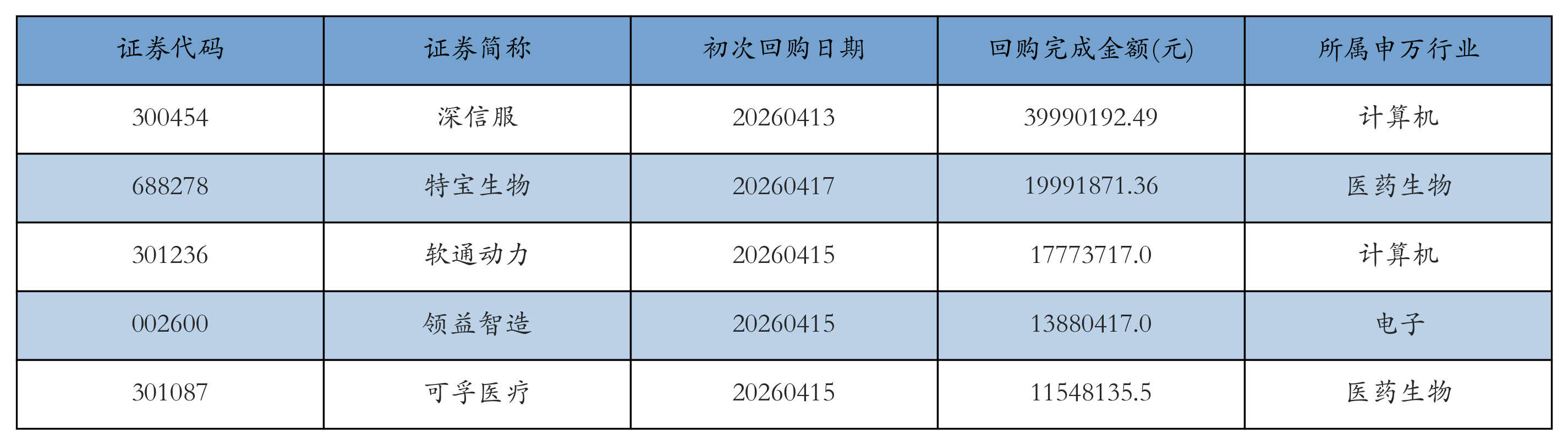 上周共有16条开始执行回购公告,其中执行金额最多的5条公告为: