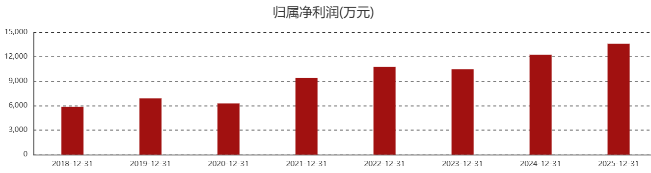 2025年,公司实现营业收入5.32亿元,较上年同期增长12.88%;归母净利润1.36亿元,较上年同期增长10.87%。