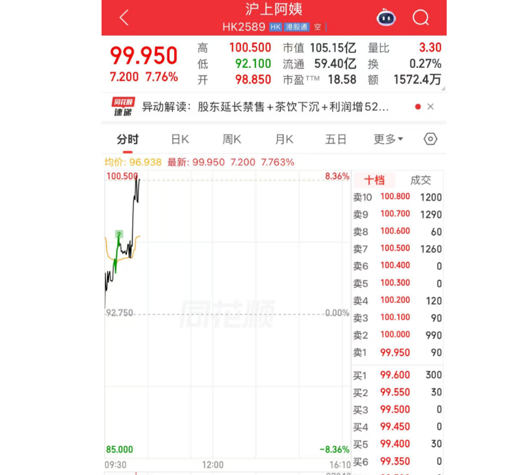 港股异动 | 沪上阿姨一度涨逾8% 控股股东在内的全体IPO前股东自愿延长禁售期