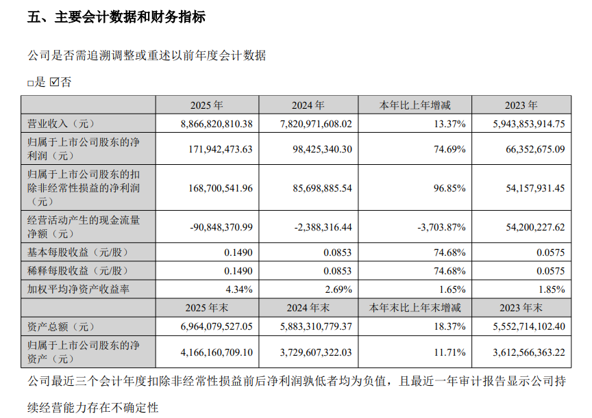 年报显示,2025年力源信息实现营业收入88.67亿元,同比增长13.37%;归属于上市公司股东的净利润1.72亿元,同比增长74.69%;扣除非经常性损益的净利润1.69亿元,同比大增96.85%。公司称业绩增长主要受益于电子元器件代理分销业务在AI、工业新能源、汽车电子等领域需求提升,以及自研芯片业务推广见效。