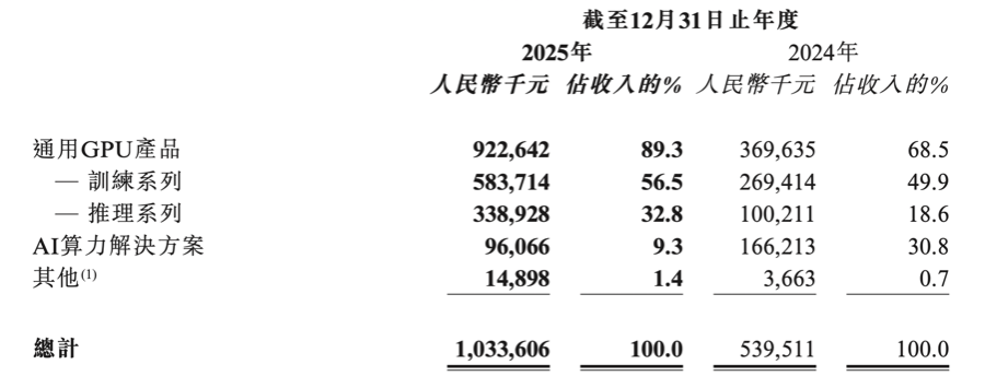 从收入构成来看,训练系列通用GPU产品对公司的收入贡献进一步提高。该系列占收入比重从2024年的近50%,到2025年已经提升到56.5%。财报显示,公司面向训练场景的天垓系列产品,在年内产生5.84亿元收入,同比增长116.7%。