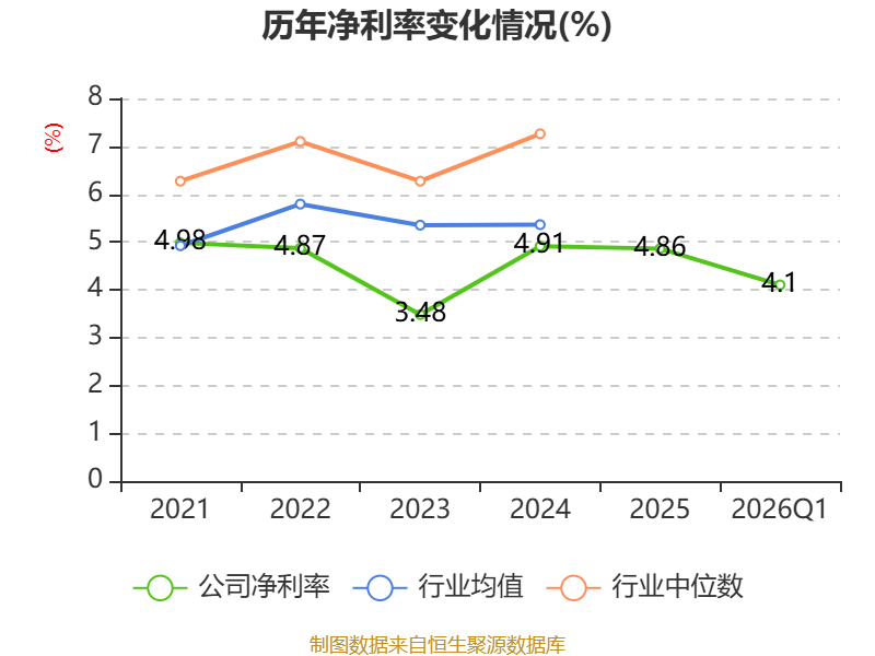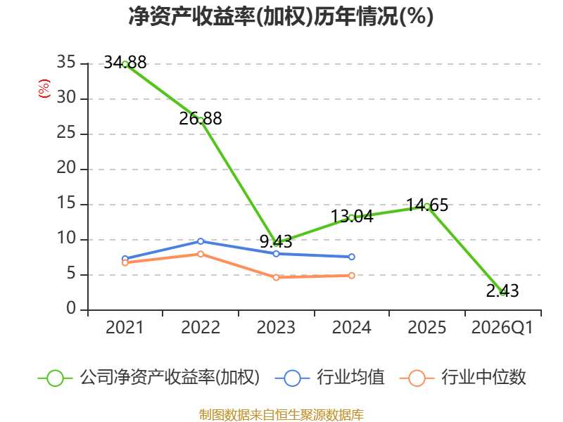 盈利能力方面, 2026年一季度公司加权平均净资产收益率为2.43%,同比上升0.12个百分点。公司2026年第一季度投入资本回报率为1.9%,较上年同期上升0.59个百分点。