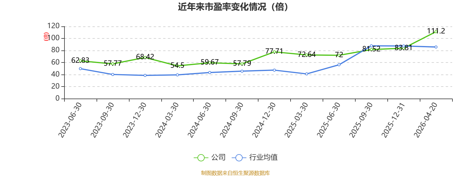 以4月20日收盘价计算,锐捷网络目前市盈率(TTM)约为111.2倍,市净率(LF)约15.42倍,市销率(TTM)约5.36倍。