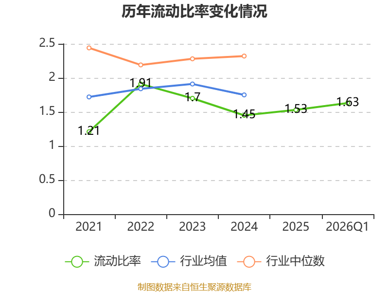 2026年第一季度,公司流动比率为1.63,速动比率为0.79。