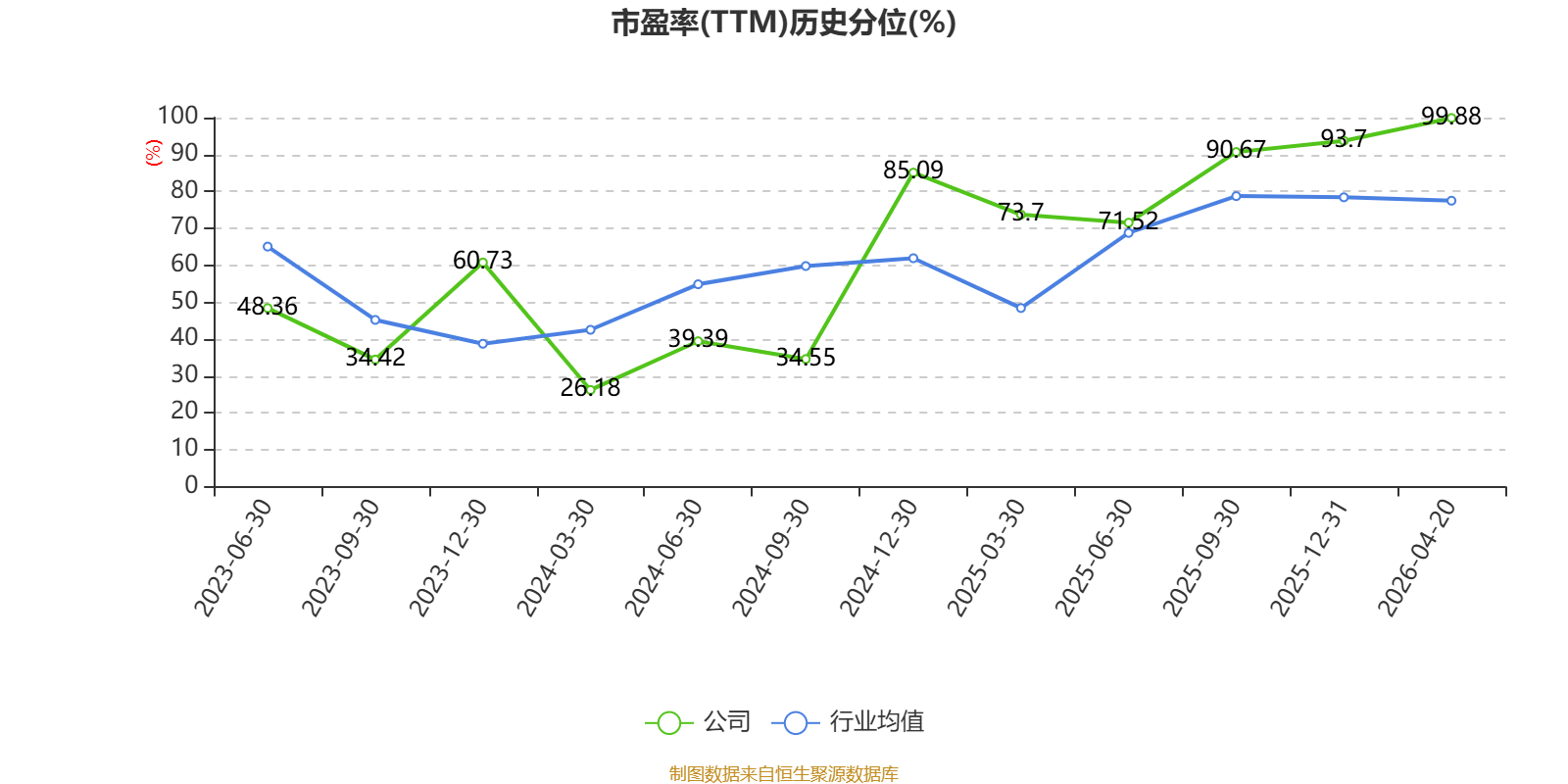 市盈率、市净率为负时,不显示当期分位数,会导致折线图中断。