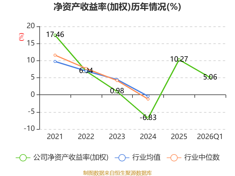 盈利能力方面, 2026年一季度公司加权平均净资产收益率为5.06%,同比上升3.75个百分点。公司2026年第一季度投入资本回报率为4.8%,较上年同期上升3.65个百分点。