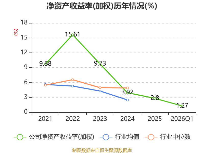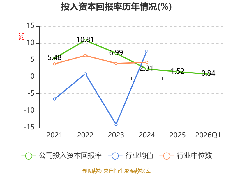 盈利能力方面, 2026年一季度公司加权平均净资产收益率为1.27%,同比上升1.19个百分点。公司2026年第一季度投入资本回报率为0.84%,较上年同期上升1.16个百分点。