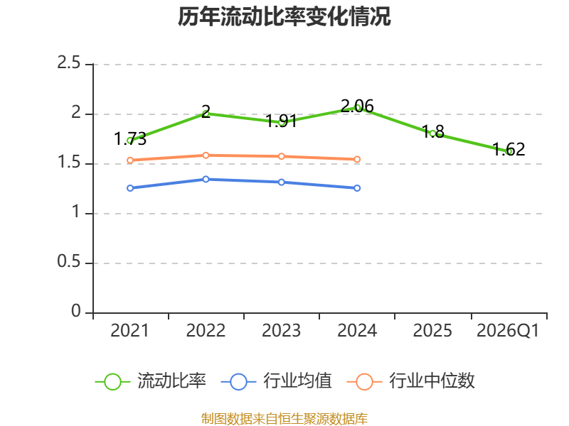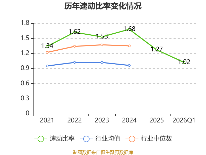 2026年第一季度,公司流动比率为1.62,速动比率为1.02。