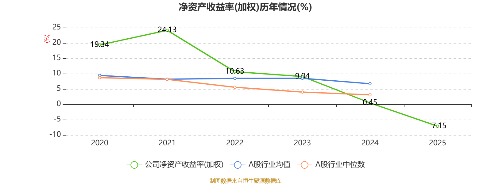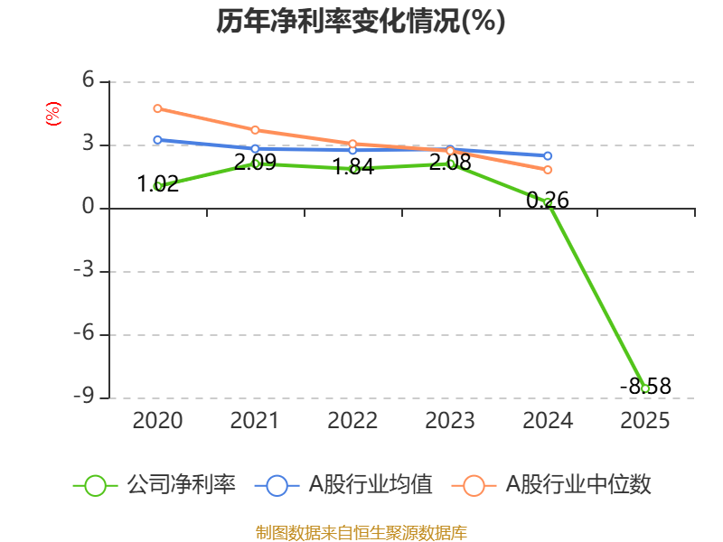 数据显示,2025年公司平均净资产收益率为-7.15%,较上年同期下降7.6个百分点。