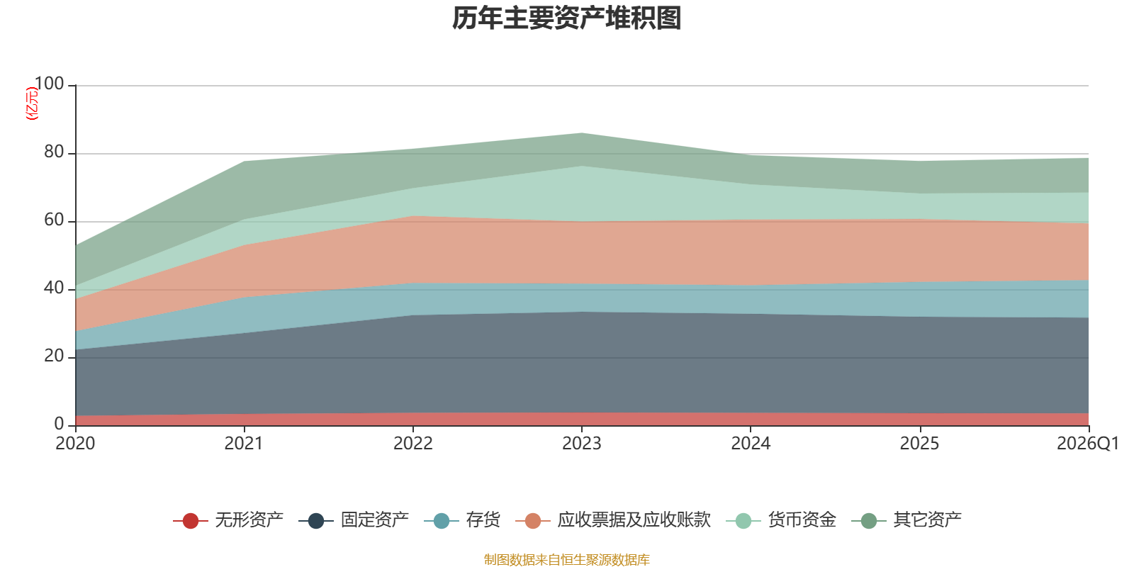 资产重大变化方面,截至2026年一季度末,公司应收票据及应收账款较上年末减少9.76%,占公司总资产比重下降2.57个百分点;货币资金较上年末增加20.71%,占公司总资产比重上升1.87个百分点;存货较上年末增加7.29%,占公司总资产比重上升0.8个百分点;固定资产较上年末减少0.77%,占公司总资产比重下降0.7个百分点。