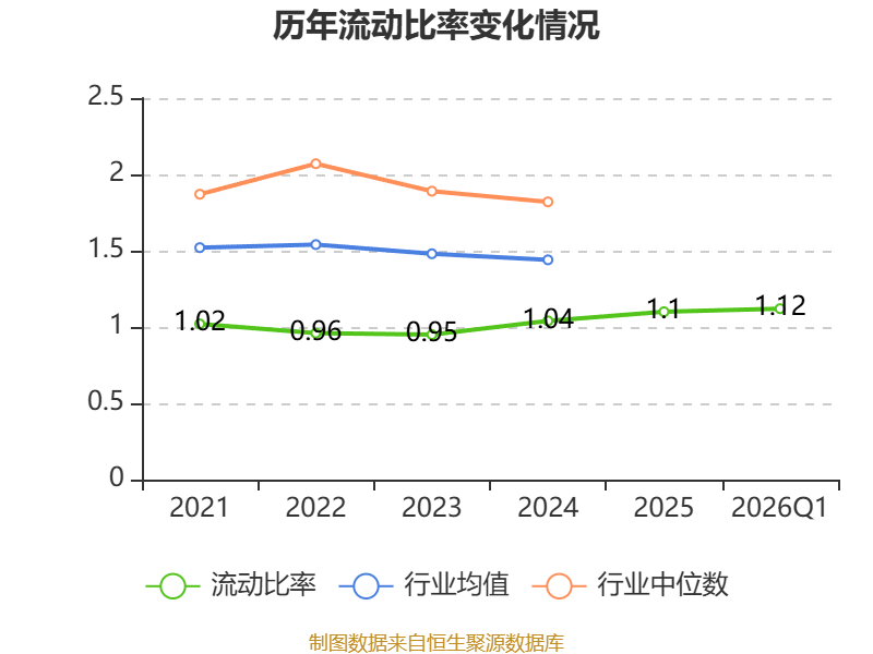 2026年第一季度,公司流动比率为1.12,速动比率为0.82。