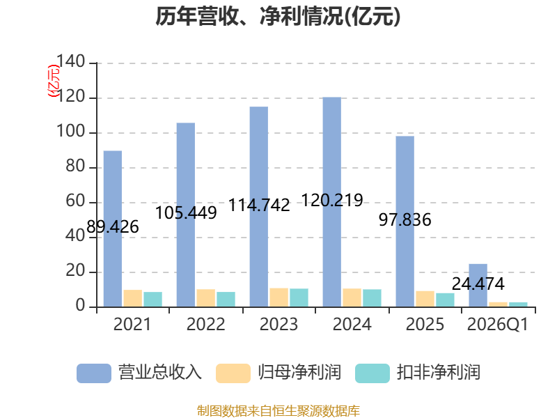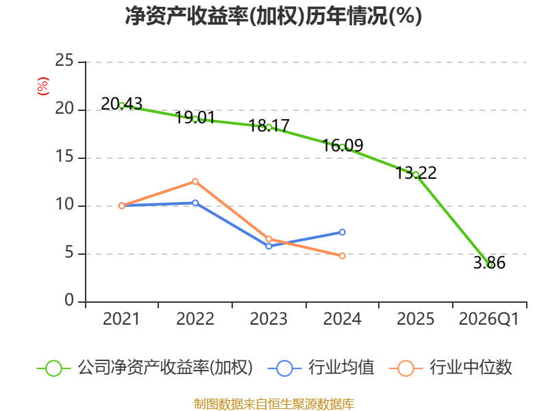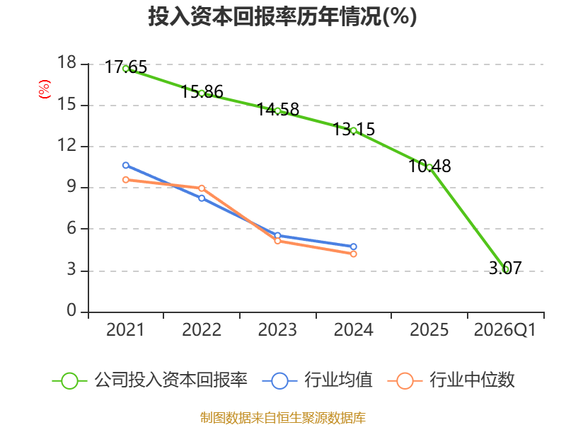 盈利能力方面, 2026年一季度公司加权平均净资产收益率为3.86%,同比下降0.14个百分点。公司2026年第一季度投入资本回报率为3.07%,较上年同期下降0.05个百分点。