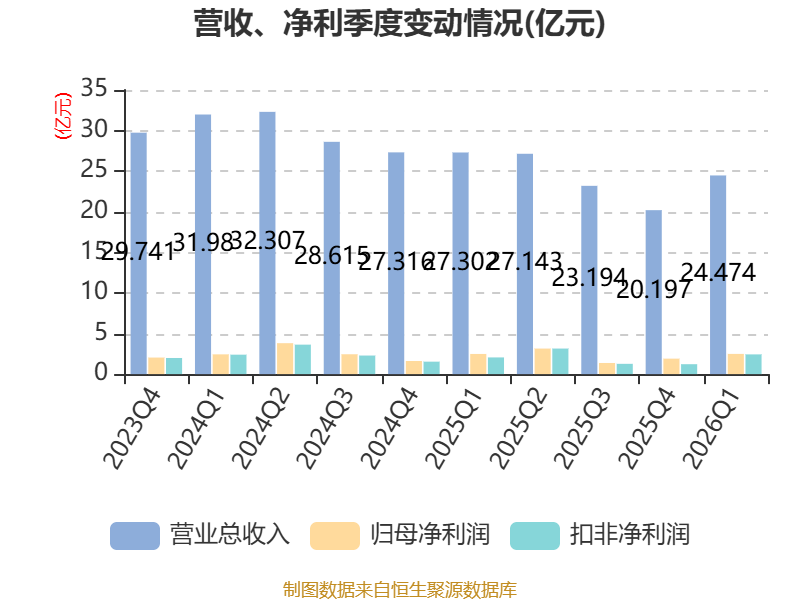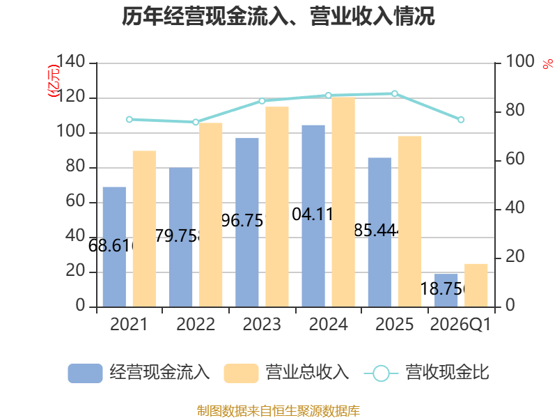 截至2026年一季度末,公司经营活动现金流净额为1.25亿元,同比增加1.4亿元;筹资活动现金流净额1370.63万元,同比增加4510.26万元;投资活动现金流净额-1.15亿元,上年同期为-9137.07万元。