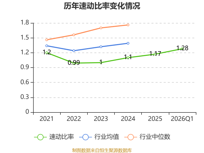 2026年第一季度,公司流动比率为1.55,速动比率为1.28。