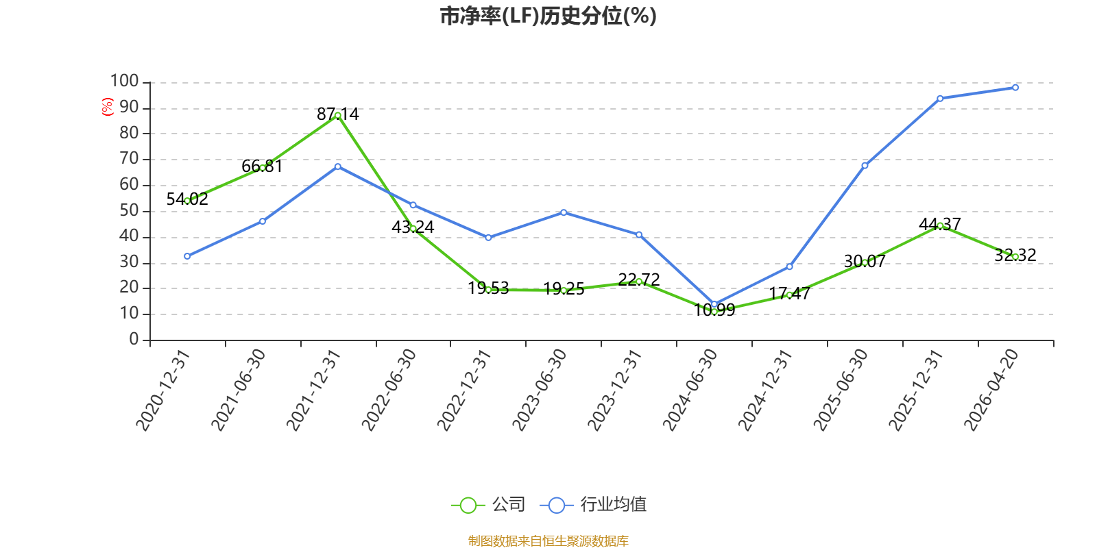 市盈率、市净率为负时,不显示当期分位数,会导致折线图中断。