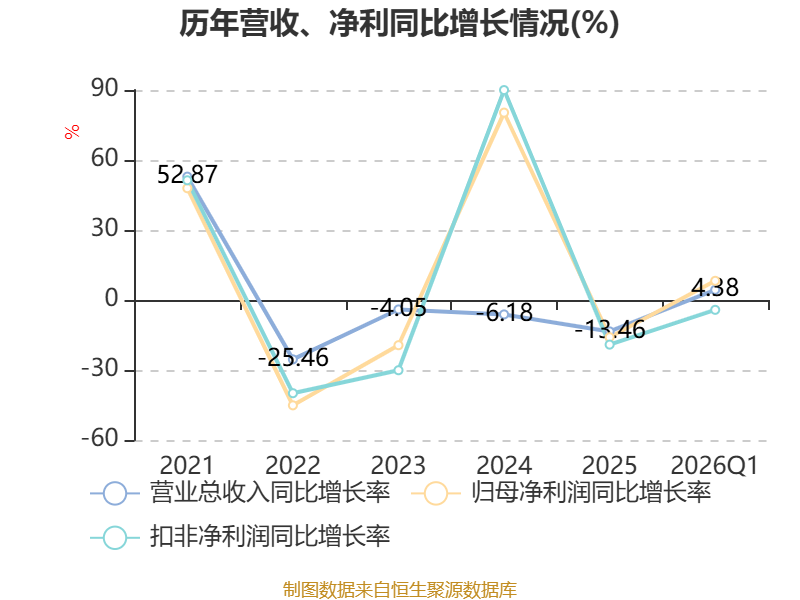 资产重大变化方面,截至2026年一季度末,公司货币资金较上年末增加27.64%,占公司总资产比重上升3.38个百分点;交易性金融资产合计较上年末减少4.26%,占公司总资产比重下降1.81个百分点;固定资产较上年末减少1.58%,占公司总资产比重下降1.02个百分点;其他流动资产较上年末减少37.99%,占公司总资产比重下降0.71个百分点。