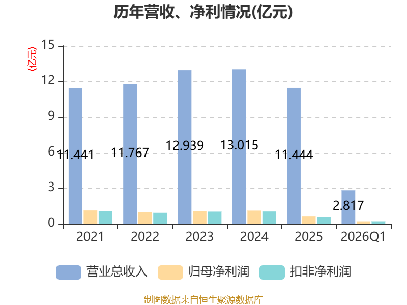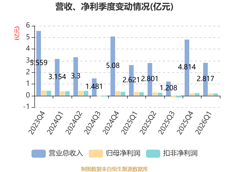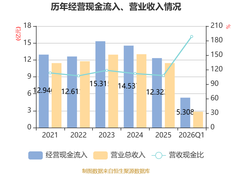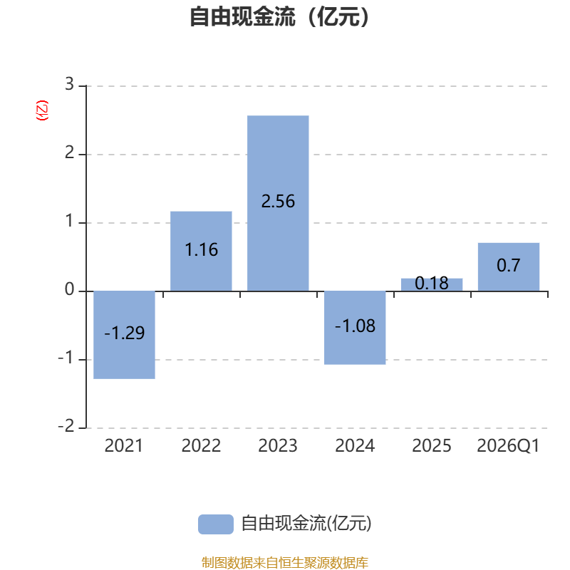 截至2026年一季度末,公司经营活动现金流净额为1.76亿元,同比增长56.5%;筹资活动现金流净额-62.7万元,同比增加209.4万元;投资活动现金流净额-1.05亿元,上年同期为-4411.83万元。