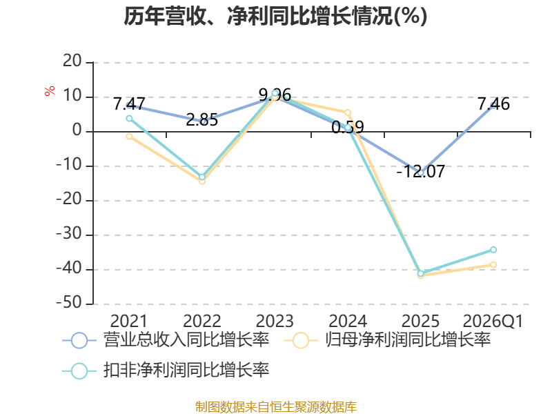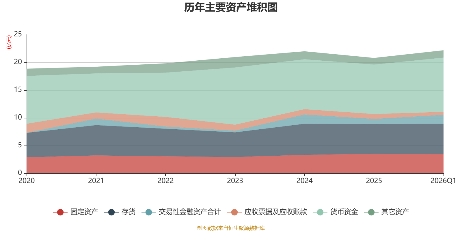 资产重大变化方面,截至2026年一季度末,公司交易性金融资产合计较上年末增加75.34%,占公司总资产比重上升2.86个百分点;应收票据及应收账款较上年末减少41.14%,占公司总资产比重下降1.91个百分点;固定资产较上年末减少1.73%,占公司总资产比重下降1.33个百分点;货币资金较上年末增加9.86%,占公司总资产比重上升1.28个百分点。