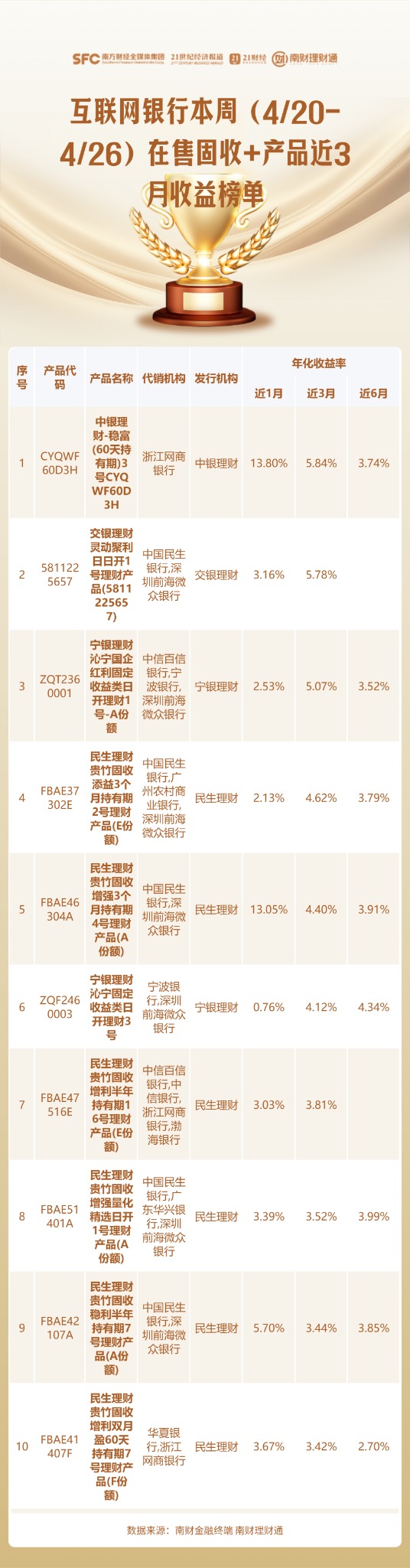 此外,南财理财通虽力求客观公正,但不对本评价榜信息的真实性、完整性和准确性作任何保证,排名信息仅供参考。