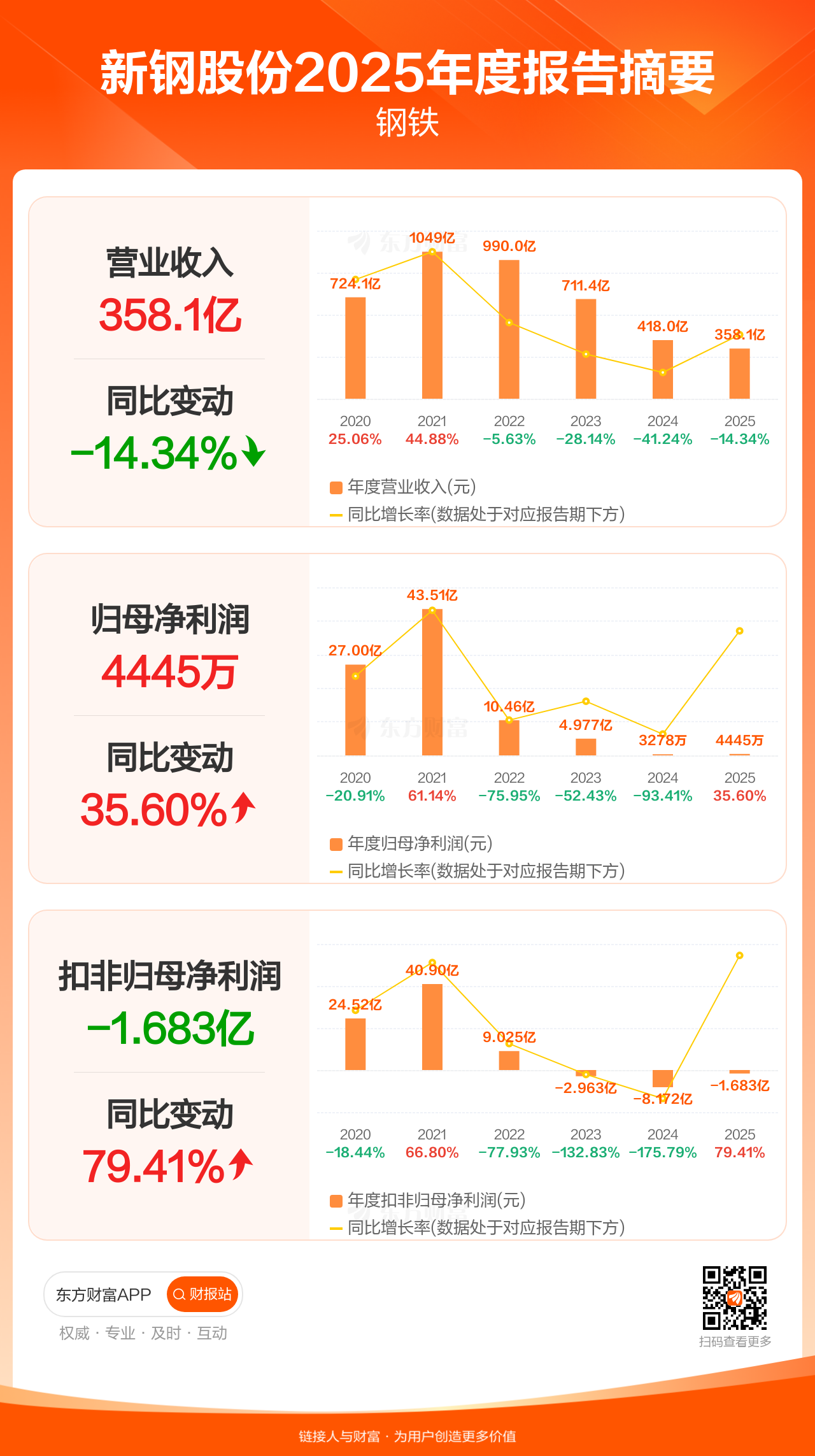 图解财报:新钢股份全年归母净利润4445.01万元,同比增长35.60%