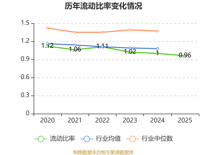 2025年,公司流动比率为0.96,速动比率为0.93。