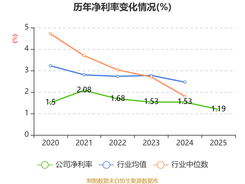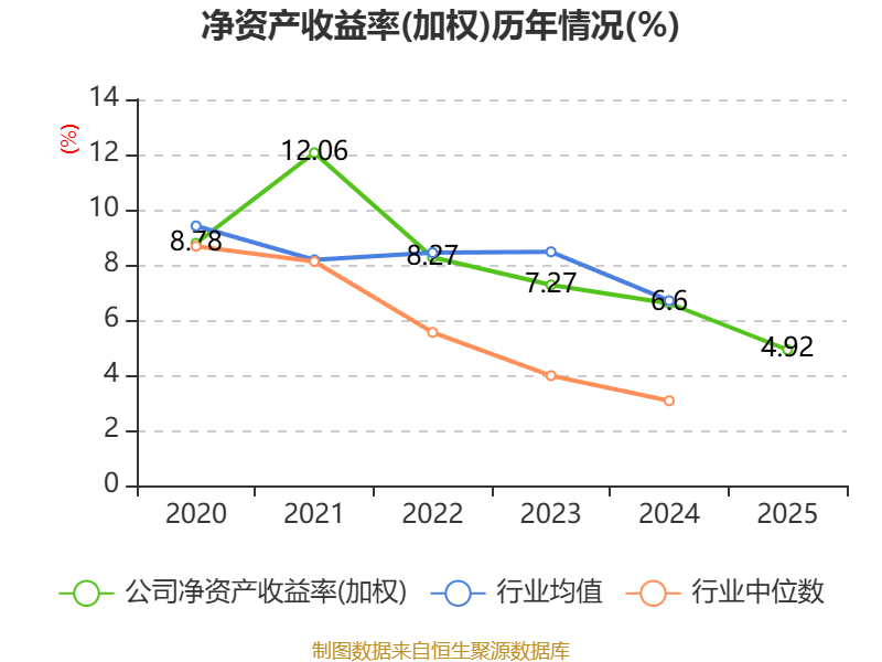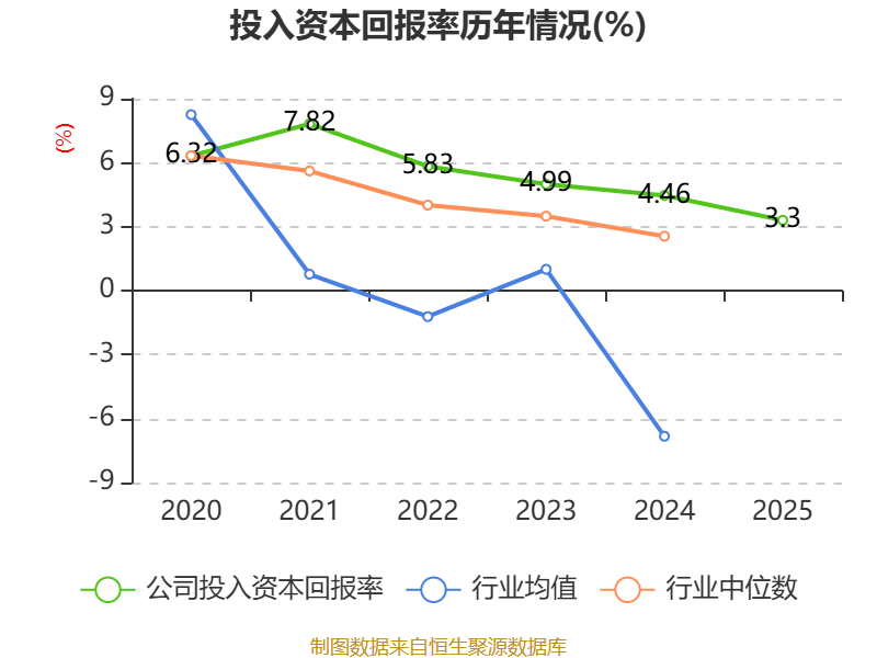 数据显示,2025年公司加权平均净资产收益率为4.92%,较上年同期下降1.68个百分点。公司2025年投入资本回报率为3.3%,较上年同期下降1.16个百分点。