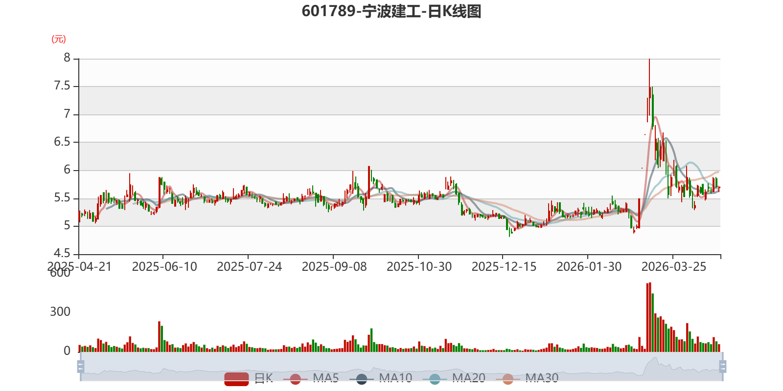 以4月20日收盘价计算,宁波建工目前市盈率(TTM)约为36.83倍,市净率(LF)约1.89倍,市销率(TTM)约0.4倍。